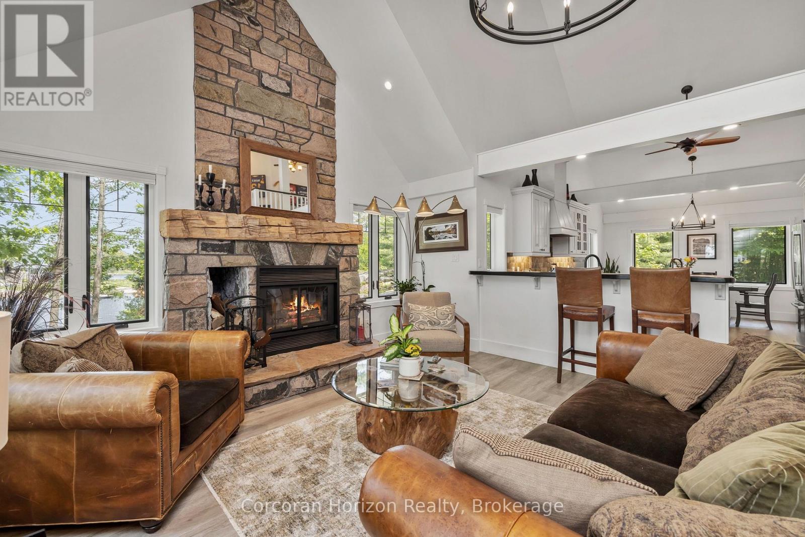 Waterfront Paradise | Boat Access Only | Private Dock | 4-Season Retreat | Three decks | Hot Tub | Escape to your own private oasis with this exceptional boat-access-only waterfront property, perfectly designed for those who crave serenity, adventure, and luxury. This quality-built, four-season home offers unmatched privacy and breathtaking natural beauty. Been chasing sunsets? Well, consider this the end of your search. Here you can end the day with stunning, unobstructed views over the water. The sunsets here are nothing short of magical. Secure your boat with ease at your own private dock, and explore the surrounding waters at your leisure. Soak under the stars in the private hot tub on one of three decks, the perfect way to unwind after a day on the lake. Designed for all seasons, this home features top-tier construction and modern comforts, making it ideal for weekend escapes or full-time living. The main floor has been upgraded with low maintenance, high quality luxury vinyl flooring to stand up to high traffic and wet feet! Power outages are common in cottage country, but we've got you covered with a whole home generator backup system! Conveniently located just a short boat ride from the marina, you'll not only have easy access to supplies, dining, and services, you will be able to enjoy a quick ride to your dock in protected water. Whether you're looking for a peaceful family cottage, an outdoor adventure base, or a turn-key luxury retreat, this rare waterfront gem has it all. (id:48047)