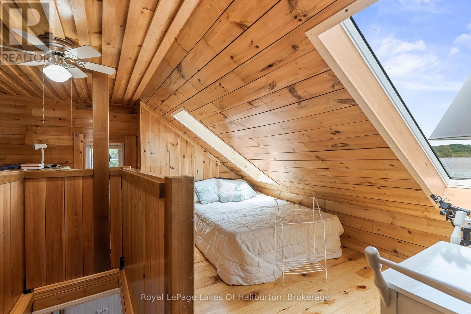 Year-round home or cottage on sought-after Maple Lake, part of a scenic 3-lake chain. This property offers a rarely found level lot with 103 ft of sand beach, an aluminum dock, and stunning lake views, current owner is enjoying as their perfect retirement home.The 3-bedroom, 2-bathroom home combines comfort, function, and recent high-end upgrades. Over $300,000 has been invested in custom landscaping, including stone patios and walkways and shoreline enhancements with a stone retaining wall. Lush perennial gardens, charming small creek, plus a garden shed and cute privy. Inside, the living room showcases cherry floors, a Napoleon zero-clearance airtight fireplace, and walls of windows framing the water. The main-floor bedroom features cherry floors, double closets, and lake views, with the main 5pc bathroom offering laundry, a bidet, and a Safe Step walk-in tub/shower with heated seat and therapy functions.The kitchen is fitted with granite countertops and ample cabinetry. The sun-filled family room/sunroom boasts beautiful lake views, a propane fireplace, abundant lakeside windows, sliding glass door walkout to lakeside deck and custom stone patio. Open concept with the dining room with lots of storage and large picture windows and walks out to a 10 'x 11' covered deck with Trex decking. Extras include central air, central vac, propane forced-air furnace, drilled well and pumphouse that supplies water for the flowers. A bonus to this beautiful setting is the oversized insulated garage with a pine-finished studio with a propane airtight stove, plus a single-car garage with electric door opener, insulated and drywalled. Upstairs, a pine-finished loft with skylights, large windows, track lighting, and generous storage completes this waterfront retreat. Access off Highway 118 with a easy commute to the GTA. (id:48047)