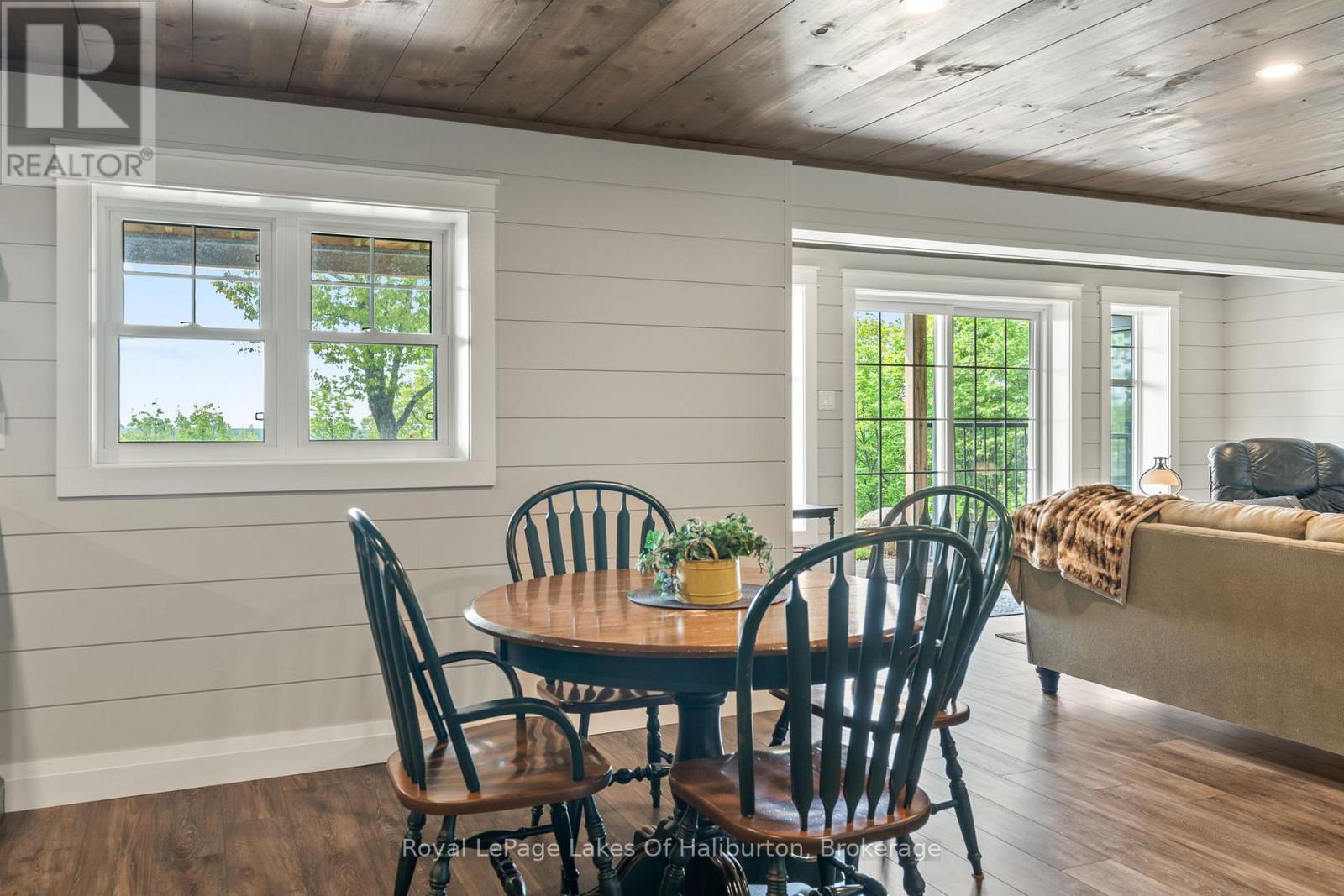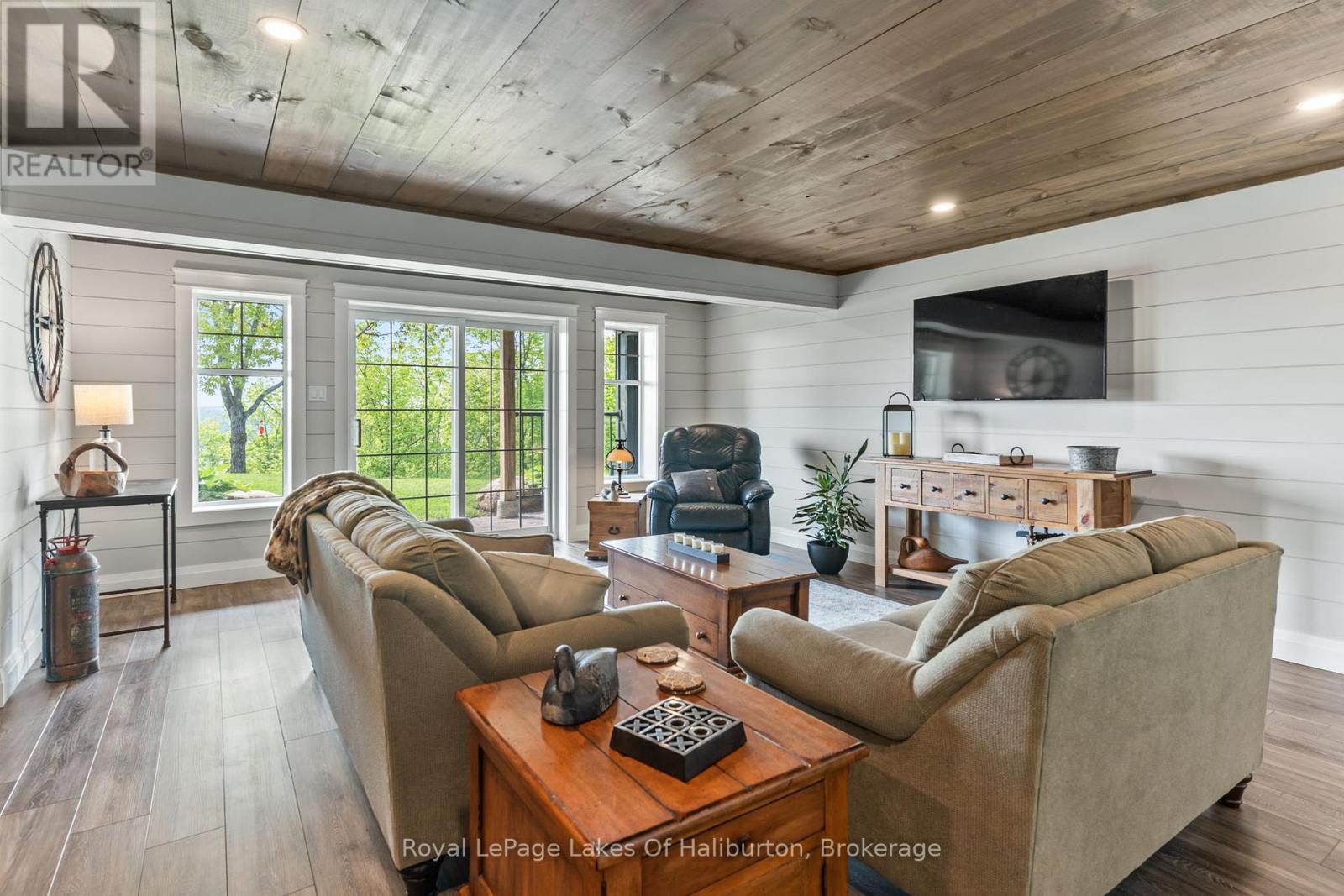 Experience refined lakeside living on the private shores of Loon Lake, where 800 feet of deep waterfront & over 5,000 sq ft of thoughtfully designed living space come together in perfect harmony. This year-round meticulously maintained 3+2 bedroom residence is the epitome of peace and luxury, offering breathtaking panoramic views and unmatched privacy. At the heart of the outdoor experience is a stunning natural granite and stone firepit area with lake vistas. Enter through a timber-frame porch into the grand Great Room, where a floor-to-ceiling dry stack stone fireplace, engineered hardwood flooring and lots of windows invite the outdoors in. Enjoy the 850+ sq ft deck with glass-panel railings, where sunrises & the tranquil lake horizon set the tone for each day. The kitchen is equipped with stainless steel appliances, soft-close cabinetry & a corner sink with captivating views. The main-floor primary suite is a private sanctuary, complete with a ensuite with heated floors, a walk-in closet & direct access to a screened-in Haliburton Room. The lower level extends the homes versatility with two more bedrooms, games room, heated floors, a second kitchen, 3-piece bath, and a cozy living area that opens to the hot tub room, stone flooring & stacking windows blend indoor comfort with natures beauty. Designed for accessibility and functionality, the home features, wide hallways, California shutters, & a spacious laundry room with heated floors & sink, generator & 200 amp. The heated triple garage includes a drive-through bay, electric openers,100-amp panel & 9ft doors. A separate 1,800 sq ft heated garage/workshop with 9-ft doors, 100 amp & a wood lean-to offers ample space for hobbies & storage, landscaped with dry stack stone walls, perennial gardens, & a generator backup system. On this 54 acre parcel you can hunt in your own backyard and close to snowmobile trails. An easy 4 min. walk or short ATV/UTV path to lakeside decking area with deep water off docks end. (id:48047)